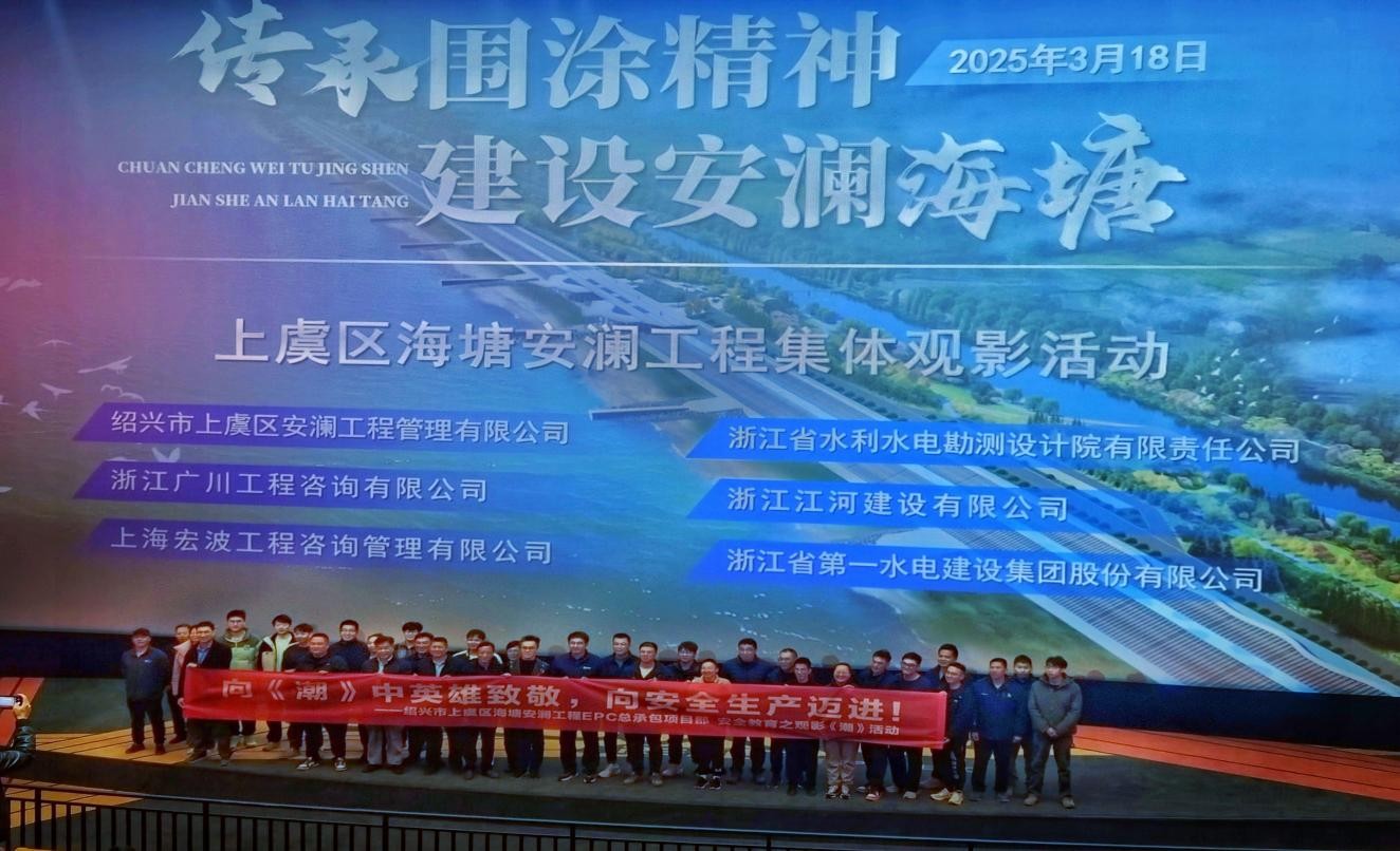 為致敬圍涂英雄詩史,3月18日晚,上虞海塘安瀾工程項目部組織工程全體參建人員觀看電影《潮》,共500余人參加了此次活動。